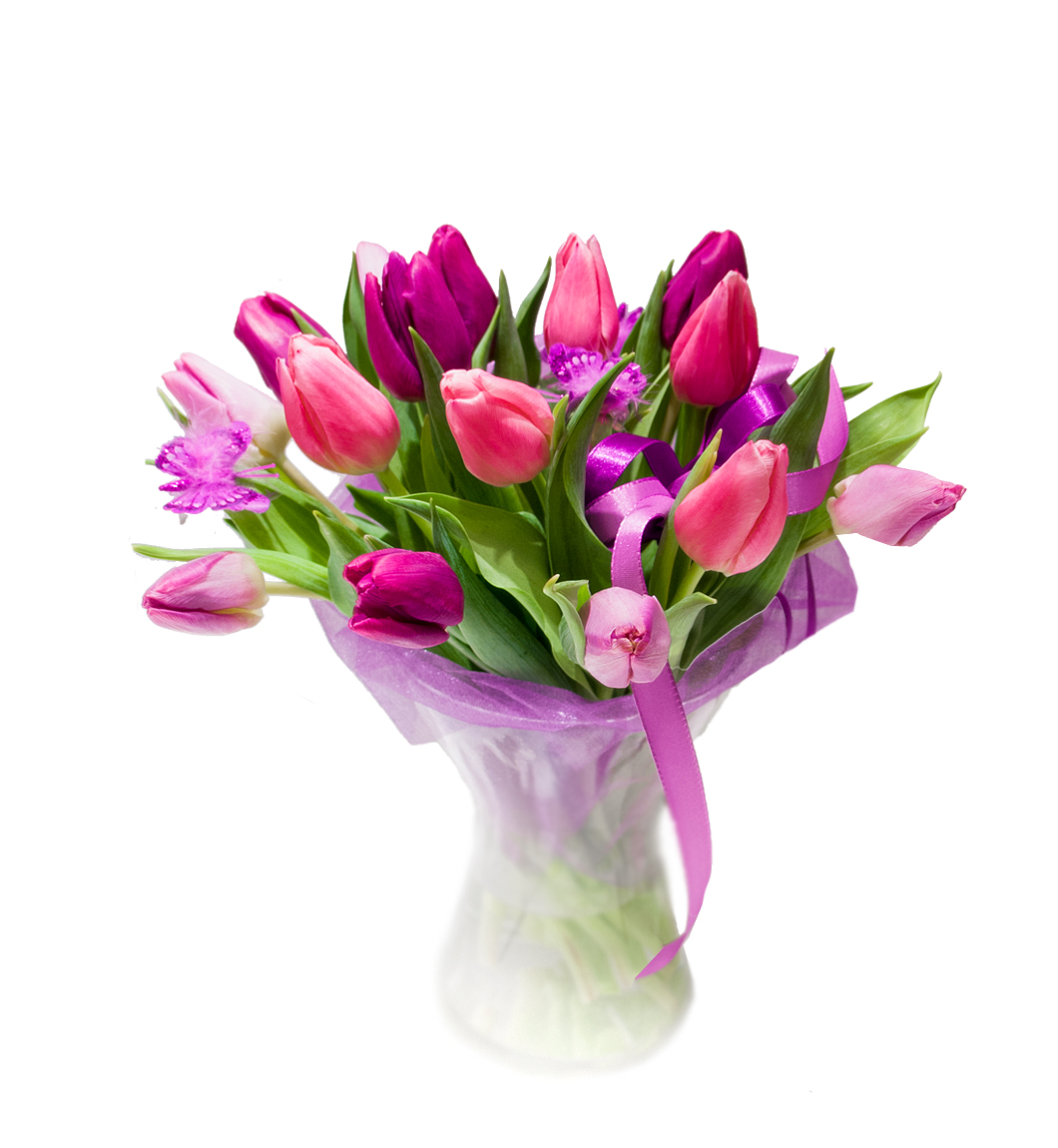 Kaunis kimp 21-st tulbist, kimbu ümber kangas, värv, vastavalt saadavusele